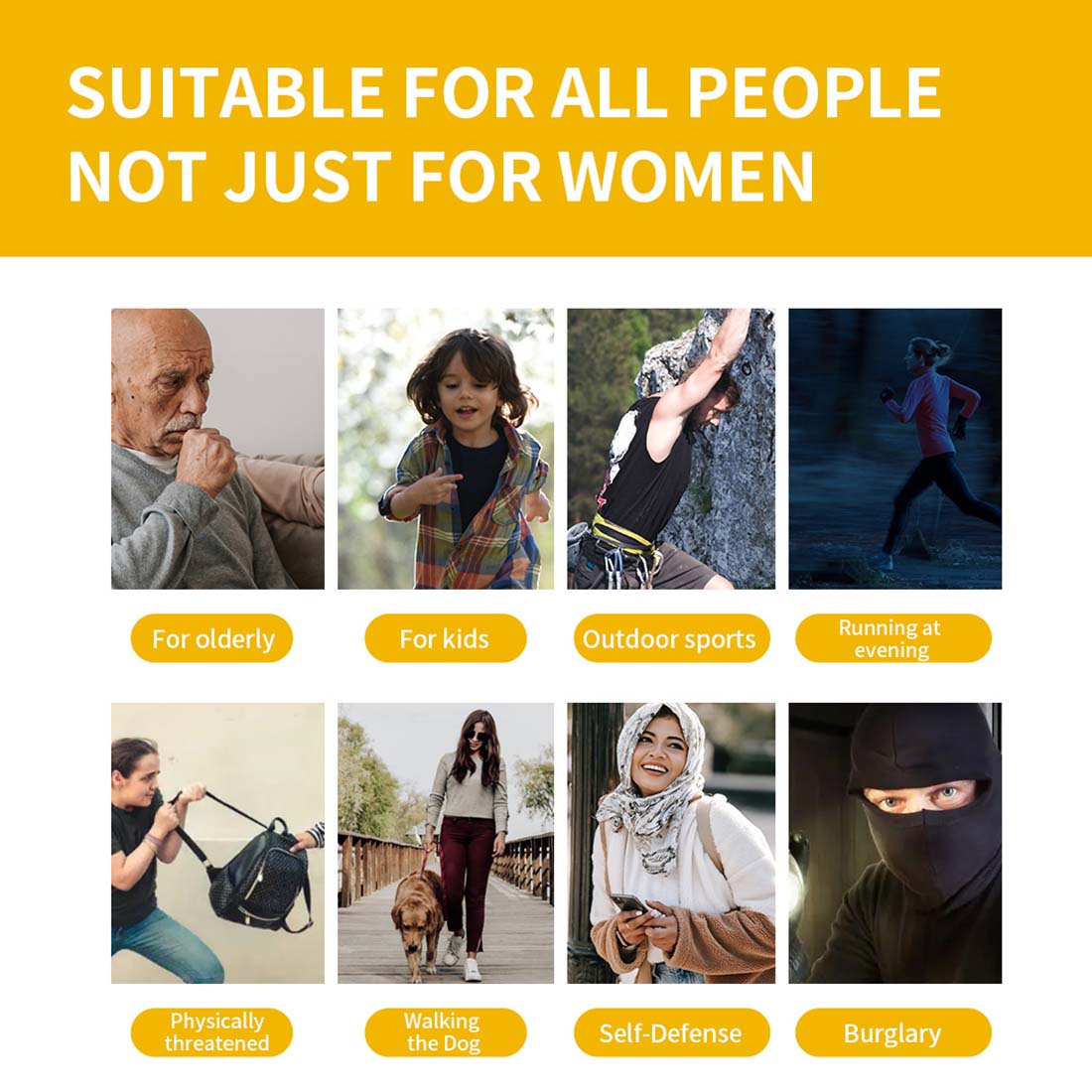 2.Pull the pin activate the alarm and the light flashes,reinsert the pin to stop it. In case of an emergency, a loud alarm can attract the attention of others and give you timely help.