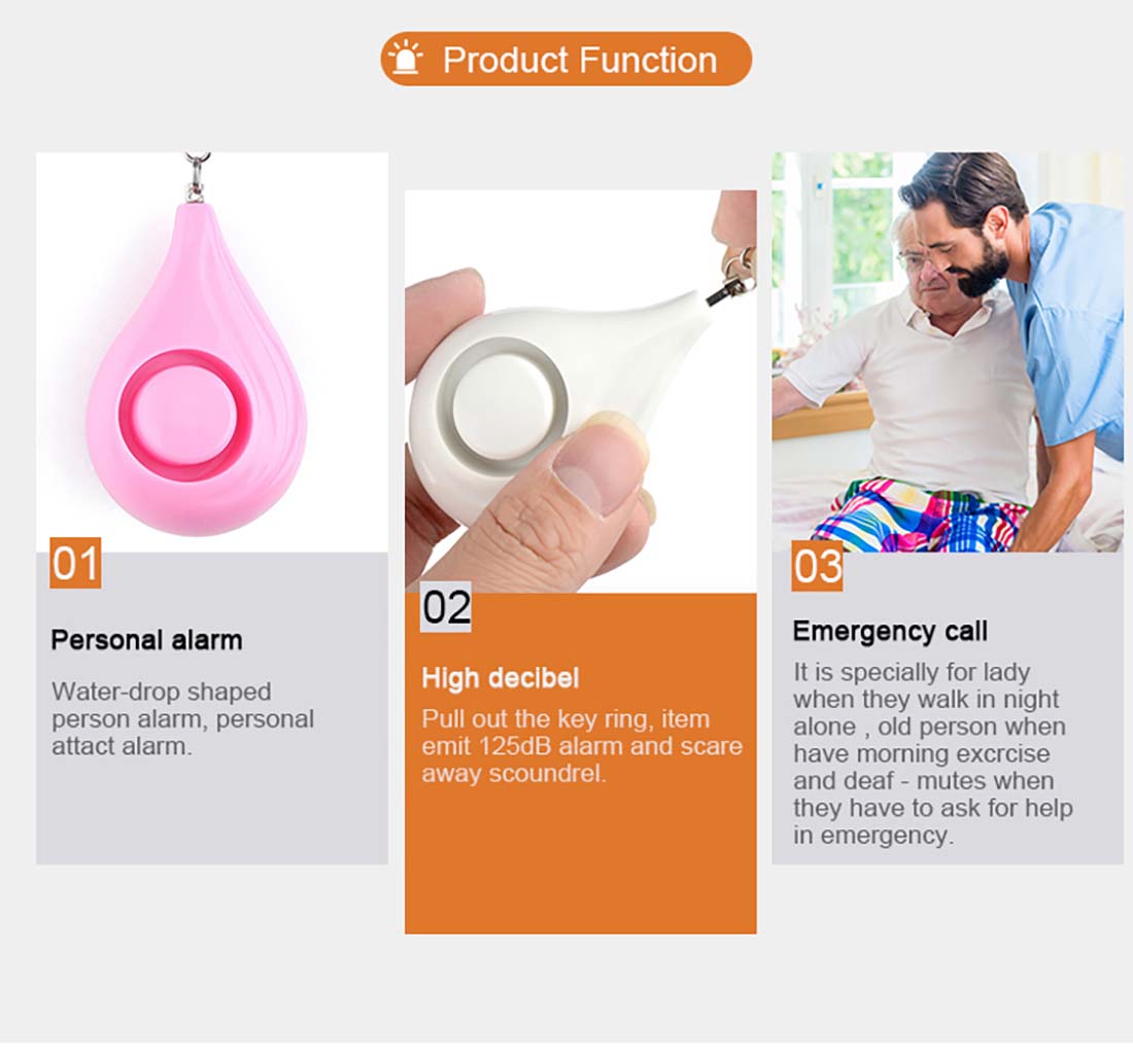 1. Water-drop shaped person alarm, personal attact alarm.